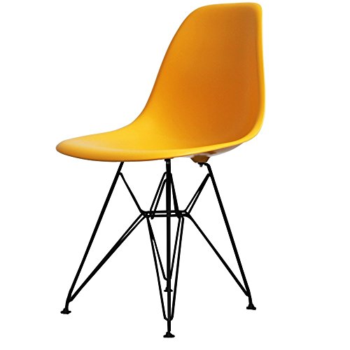 PRODUCT DESCRIPTIONS:This Eiffel Style Bright Yellow Plastic Retro Side Chair with Black Legs would look great in any contemporary space. This beautifully coloured replica Eames style DSR chair, combines comfort and strength and would be ideal either as a statement chair or as a dining chair. The moulded seat and Eiffel style base, simply add to its super stylish look.