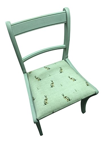 PRODUCT DESCRIPTIONS:UPCYCLED CHAIR IN ANNIE SLOAN PARIS GREY WITH A HARLEY HARE SEAT An upcycled regency style chair that would make a great occasional chair, bedroom chair, desk chair, or part of an eclectic dining set. Measurements: Width 50cm x Depth 50cm x Height 85cm. All our chairs are a standard seat height of approximately 47cm. These chairs are vintage and, as such, vary slightly in terms of detailing although always very similar. The are made to order to the exact colour and fabric that you have chosen and we will show you pictures of the different detailing in stock if we don't have the identical detail to the stock photo. Please look out for our message! Any questions, please ask us. PRODUCTS & SERVICES Bespoke orders Many customers order an eclectic mix of our chairs to create a unique dining set. You can alternatively order a set to your own specifications. Please look at our other items for inspiration. We are happy to source and paint special pieces of furniture for that extra special one off. Furniture painting service If you wish to have a piece of your own furniture repainted, we use Annie Sloan Chalk Paint. Please see the Annie Sloan website or Pinterest pins for a full range of colours. We have been involved in a number of commercial projects supplying furniture to pubs, restaurants, tea rooms & large student flats. Please contact us if you wish to discuss any of the above. GENERAL Please note that all items are made to order in our workshop by a small team of dedicated staff. Please bear this in mind and be reasonable about delivery times. Larger orders or chairs requiring more upholstering may at times take longer. If you have an urgent order then please contact us prior to purchasing and we will advise if we can speed up your order on 07533598867