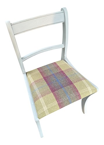 PRODUCT DESCRIPTIONS:UPCYCLED CHAIR IN ANNIE SLOAN PARIS GREY WITH A MOSS TARTAN SEAT An upcycled regency style chair that would make a great occasional chair, bedroom chair, desk chair, or part of an eclectic dining set. Measurements: Width 50cm x Depth 50cm x Height 85cm. All our chairs are a standard seat height of approximately 47cm. These chairs are vintage and, as such, vary slightly in terms of detailing although always very similar. The are made to order to the exact colour and fabric that you have chosen and we will show you pictures of the different detailing in stock if we don't have the identical detail to the stock photo. Please look out for our message! Any questions, please ask us. PRODUCTS & SERVICES Bespoke orders Many customers order an eclectic mix of our chairs to create a unique dining set. You can alternatively order a set to your own specifications. Please look at our other items for inspiration. We are happy to source and paint special pieces of furniture for that extra special one off. Furniture painting service If you wish to have a piece of your own furniture repainted, we use Annie Sloan Chalk Paint. Please see the Annie Sloan website or Pinterest pins for a full range of colours. We have been involved in a number of commercial projects supplying furniture to pubs, restaurants, tea rooms & large student flats. Please contact us if you wish to discuss any of the above. GENERAL Please note that all items are made to order in our workshop by a small team of dedicated staff. Please bear this in mind and be reasonable about delivery times. Larger orders or chairs requiring more upholstering may at times take longer. If you have an urgent order then please contact us prior to purchasing and we will advise if we can speed up your order on 07533598867