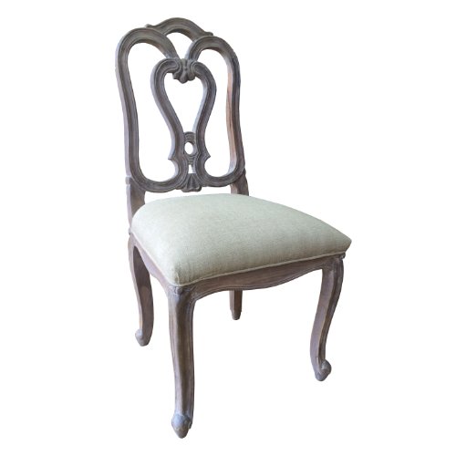 PRODUCT DESCRIPTIONS:A beautiful french style dining chair in Ash Finish. Upholstery in natural linen. Hand Carved from solid mahogany. It is a unique collection of classical French provincial style. This French style side chair is upholstered with a linen fabric. Finished in ash finished, great for use as an occasional chair, dining, chair, office chair, or dressing table chair.