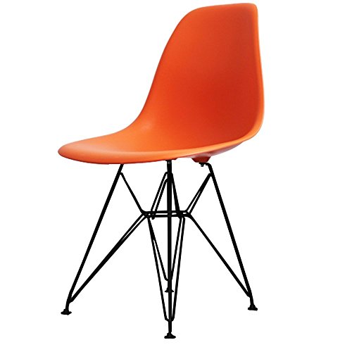 PRODUCT DESCRIPTIONS:This Eiffel Style Orange Plastic Retro Side Chair with Black Legs would look great in any contemporary or retro space. This beautifully coloured replica Eames style DSR chair, combines comfort with strength and would be ideal either as a statement chair or as a dining chair. The moulded plastic seat and Eiffel style cross-wire base, simply add to its super stylish look - you'll love this wow factor!