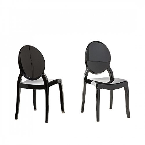 PRODUCT DESCRIPTIONS:This chair crafted from polycarbonate coloured in black is a real stunner. The settee innovative design will bring freshness and style to any interior. It is not only lightweight and easy to clean but also utterly comfortable. Add a stylish sparkle to your home décor. Details: Colour: black, Material: polycarbonate, Dimensions: 46 x 55 x 95 cm, Seat height: 45 cm, Seat depth: 46 cm, Seat surface: 46 x 41,5 cm, Backrest height: 43,5 cm, Stackable: yes, Indoor & Outdoor, Weight capacity: 150 kg. Assets: Stackable Matching elements High quality material Anti- scratch caps Innovative design Easy to maintain. Maintenance tips: Store inside in the winter Tough brushes may leave scratches on the surface Plastic has electrostatic properties which make dust settle more quickly. To keep your chair clean, wipe it using a damp cloth regularly.