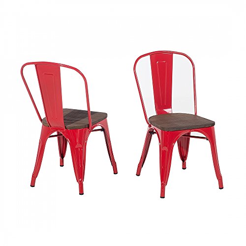 PRODUCT DESCRIPTIONS:The chair is an absolute gem that upgrades any living space. Carefully selected materials create a truly exceptional chair. Metal legs and backrest ensure stability while the seat crafted from elm wood provides utter comfort. The chair makes a sleek and sophisticated addition to any kitchen or dining room. Details ,Colour: red, Material: Frame: powder coated metal, Seat: elm wood, Dimensions: 44 x 46 x 83 cm, Seat height: 44 cm, Seat depth: 37 cm, Seating surface: 37 cm, Backrest height: 42,5 cm, Stackable: yes. Indoor: Assets: Stackable Matching elements Sturdy metal frame Modern design and total comfort Perfect for a family easy to maintain. Maintenance tips: Remove dust using a cotton or linen cloth Do not use tough brushes they may leave scratches Use only mild cleaning agents Dry the chair dry after wet cleaning.
