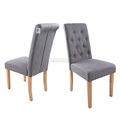 Best Selling FoxHunter Furniture Set of 4 Premium Grey Linen Fabric Dining Chairs Roll Top Scroll High Back with Solid Wood Legs Seat Contemporary Modern Look DCF02 Living Room Lounge Office - 8 Cheap Products That Make Life Easier