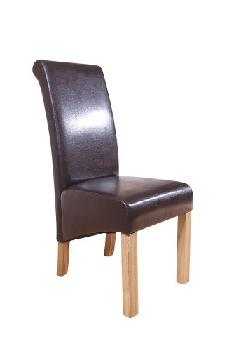 PRODUCT DESCRIPTIONS:Solid Oak and Faux Leather Scroll Top Dining Chairs, available in Black, Brown, Cream and Red