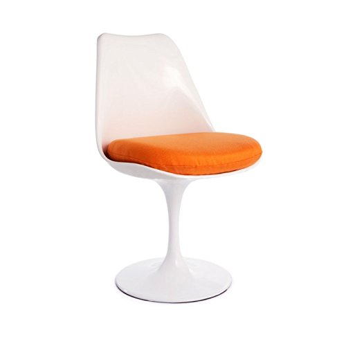 PRODUCT DESCRIPTIONS:Like the tulip flower, this chair is beautiful and graceful. It's a 1950's inspired design has been reinterpreted for the modern age. The back is made of injection-moulded plastic for a durable, glossy finish and the circular base has a rotating mechanism for your convenience. The bright colours of the soft, woolen cushion will liven up the entire room. This chic and sexy chair will make an eye-catching but relaxing addition to your home. Ideal for : Living room, dining room or office Available colours : Black, red, blue, goose green, grey or orange Other features : Available in black or white. Also available with or without armrests