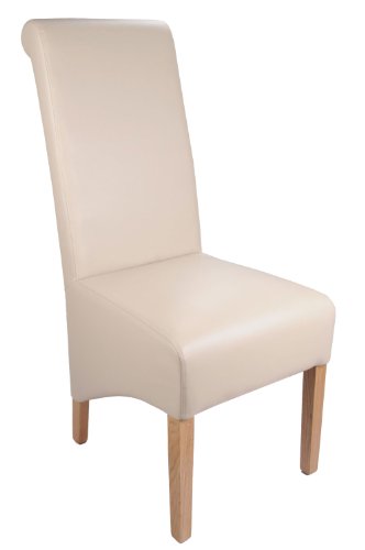 PRODUCT DESCRIPTIONS:Our most popular dining chair, in a classic bonded madras matt leather roll-back design. Each chair has a sprung and belted seat area for additional comfort and to retain bounce and shape. Available in attractive and versatile colourways ivory, black, chocolate, burgundy. Solid oak legs. Supplied fully assembled. Chairs are sold in sets of two.