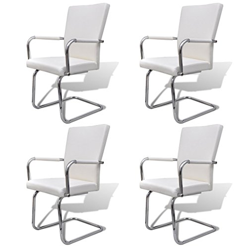 Best Deals vidaXL 4 pcs Artificial Leather Iron White Dining Chair - Special Product Of The Year