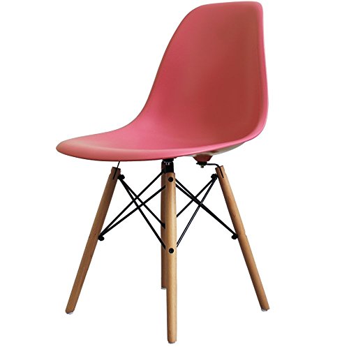 PRODUCT DESCRIPTIONS:This Eames Style Pink Plastic Retro Side Chair is a retro designer classic, especially with its super cool vintage retro look. This side chair will work well in either the home or work space and is particularly suitable both in a collection and as a single statement. The combination of comfort with strength is a direct result of the moulded plastic seat with curved edging, supported by beech wood legs and cross-wire metal frame.