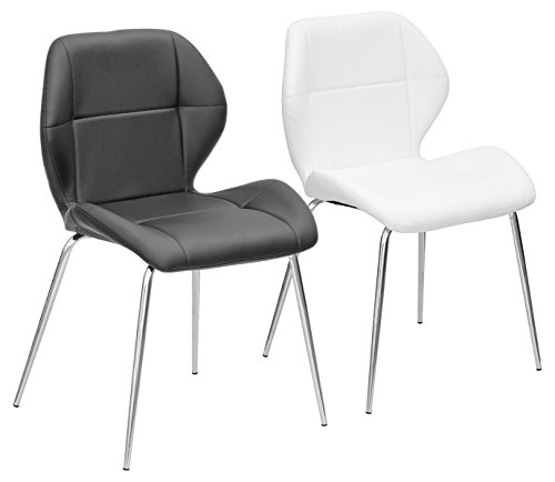 PRODUCT DESCRIPTIONS:Small, light weight, affordable, modern bistro style chairs covered in a soft plush leather-look PU. This simple bistro chair has an ergonomically shaped seat and back rest finished with a chrome plated frame that is strong and sturdy. Available in black or white PU seat. This is for ONE chair only