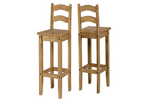 PRODUCT DESCRIPTIONS:Product Features: Bar Chair in Pine Colour Distressed Waxed Pine Finishes Sold in a Pair Top Quality Product Beautifully Designed Bar Chair Free Quick Nationwide Delivery