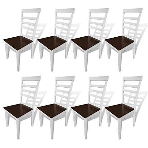PRODUCT DESCRIPTIONS:This set of 8 durable dining chairs, made of high-quality wood, will be ideal for daily use in your dining room or kitchen. Colour: Brown / white Material: Rubberwood + MDF Chair size: 48 x 44 x 95 cm (W x D x H)