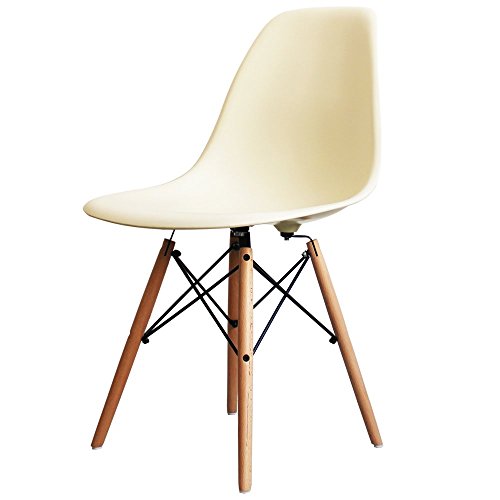 PRODUCT DESCRIPTIONS:This Eames Style Vanilla Plastic Retro Side Chair is a retro designer classic. With its super cool vintage retro look, this side chair will suit any contemporary home or office interior. The moulded plastic seat with curved edging, supported by beech wood legs and cross-wire metal frame, provide the right combination of comfort with strength. So versatile, this side chair is particularly appropriate as part of a collection or as a single statement chair.