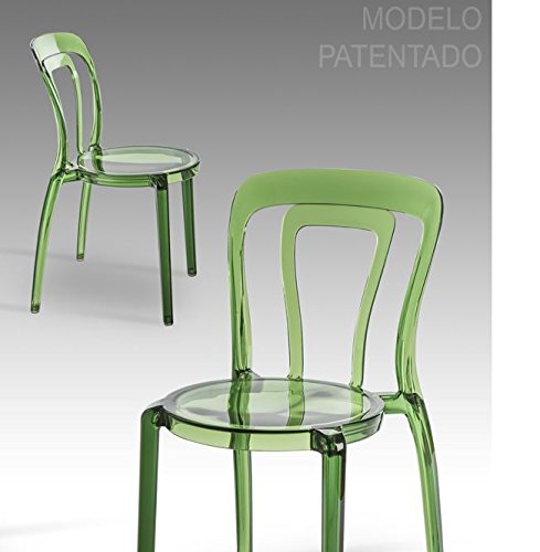 PRODUCT DESCRIPTIONS:Transparent green chair, made of polycarbonate molded with UV resistance. Stackable. 2 UNITS FOR MINIMUM ORDER MODEL.