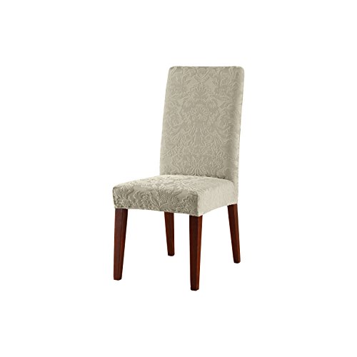 PRODUCT DESCRIPTIONS:Slipcovers stretch jacquard damask short DRC slipcover. An innovative new take on a timeless favorite! tried-and-true damask is reinvented as extremely livable in a brand new stretch jacquard fabric that contours to furniture for a custom-like fit.