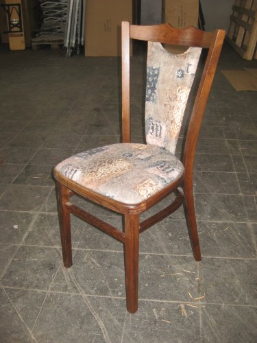 PRODUCT DESCRIPTIONS:This chair is solid German Beech. He is for highest demands for bistro, catering, restaurants etc. manufactured by one of the leading Stuhlfabricken sound. He is an easier Bistrorantestuhl. It is not cheap China import or Sitzverkürzte construction quality. Made from high quality German Beech. Normal price 89EUR was. The model therefore discounted price sale cushion. Seat cushion carbon (highest Abriebstandhaltung) Class I., modern fabric covering, further questions Phone: 06401/3813 Colour: Walnut, Tapered backrest, stackable