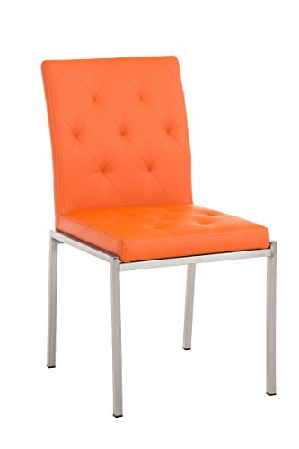Excellent Deal CLP Stainless Steel Dining Chair CHARLY, faux leather seat, modern design, seat height 48 cm, choose from up to 11 colours orange - Special Product Of The Year
