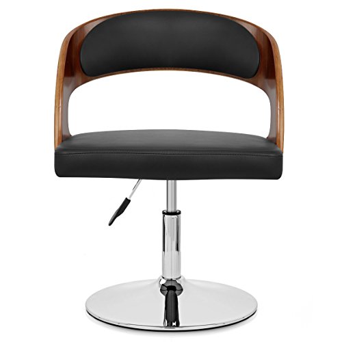 PRODUCT DESCRIPTIONS:The Evelyn Chair Walnut and Black offers a modern twist on dining furniture. This ergonomic creation binds a faux leather seat with a wooden backrest, and rests on an adjustable chrome column and base. Finally, a rubber ring helps to prevent marks to floors.Dimensions:Seat Height: 45-50cmOverall Height: 74-79cmExternal Seat Width: 48cmBackrest Height: 29cmSeat Depth: 40cmOverall Seat Depth: 48cmBase Diameter: 43cm