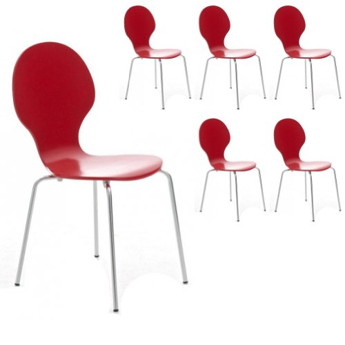 Best Deals Set of 6 Red and Chrome Metal Keeler Style Stackable Dining Chairs - Discover Cheap Products You Can Get Online