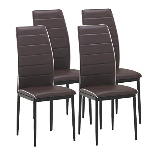 PRODUCT DESCRIPTIONS:Fashionable set of 4 dining room chairs - Metal Frame - Coating: PU - Padded seat of polyurethane foam 20 kg/m³) Colour: Brown Features: - Chair dimensions: 42x39x98 cm - seat dimensions: 42x39x46 cm.