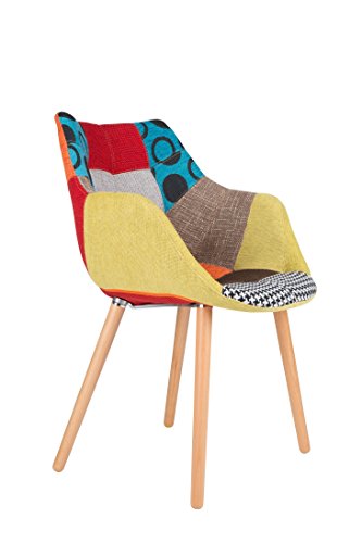 PRODUCT DESCRIPTIONS:Great Zuiver Designer Patchwork chair twelve in the retro look. With this upholstered dining room chair in with patchwork brighten up your dining area. It is also suitable for as single pieces or in a group of great to puristic glass as well as derben wooden tables. The design of the twelve patchwork comes from but notice its Dutch Live YLE company Zuiver, is known for its unusual and modern decor items. Under the colourful and a heavy duty cotton cover contains a padded plastic seat with armrests. See the legs of the chair are made of sturdy beechwood. Dimensions: (W x H x D) 60 x 82 x 60 cm, seat height: 45 cm, Weight 7 kg, Maximum load: 140 kg, Material: 100% Polyester, Foam Density 30, Armrest Height 65 cm A Worthy successor to the chair Eleven lamp from Zuiver.